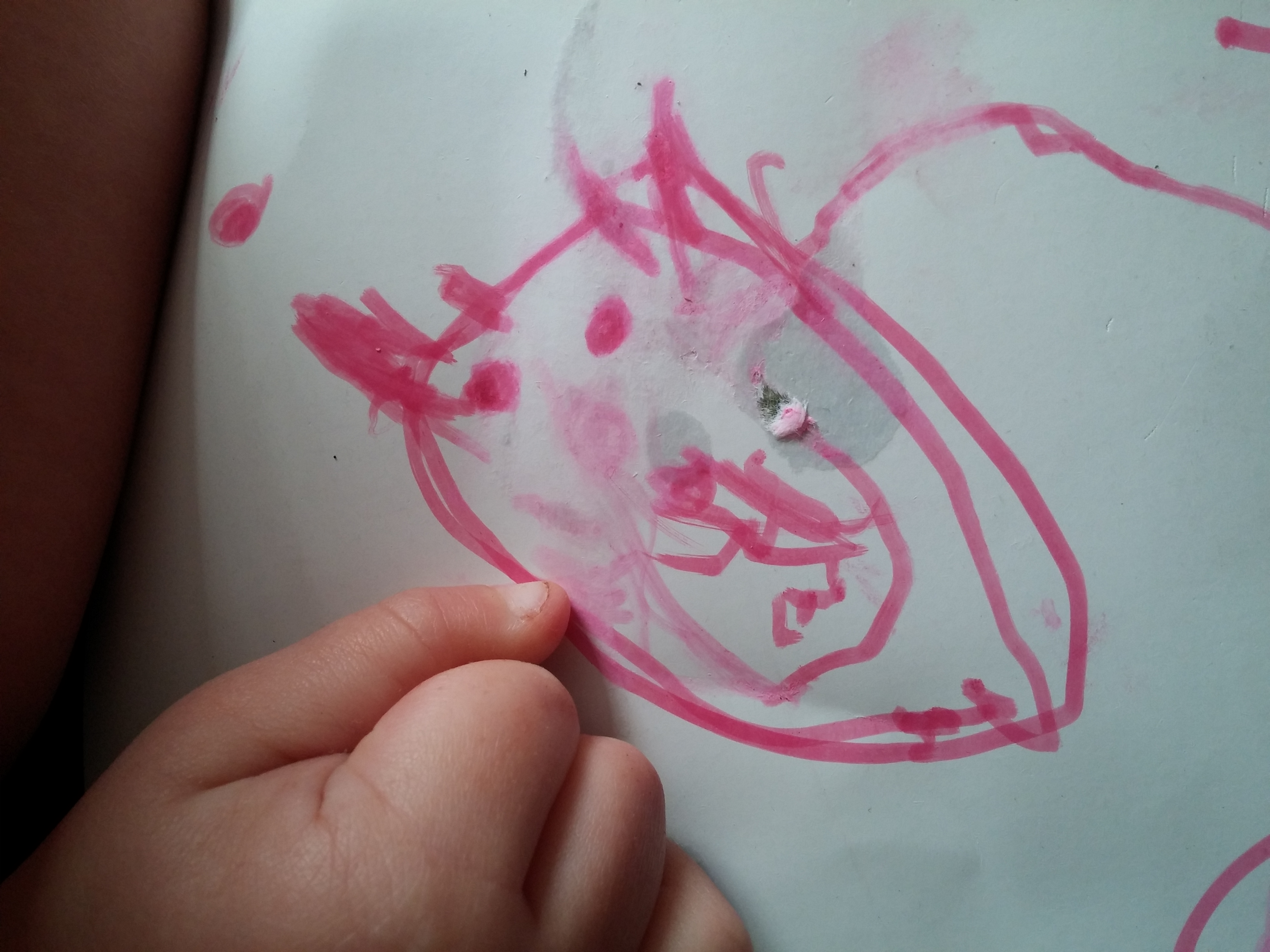 This is great, it really is, I love that my girl wants to create and seems inspired by everything she sees. Unfortunately though she hasn’t quite understood the concept of hers and mine. So when ever I try to draw, and set her up next to me. She always ends up trying to help me with my drawings.